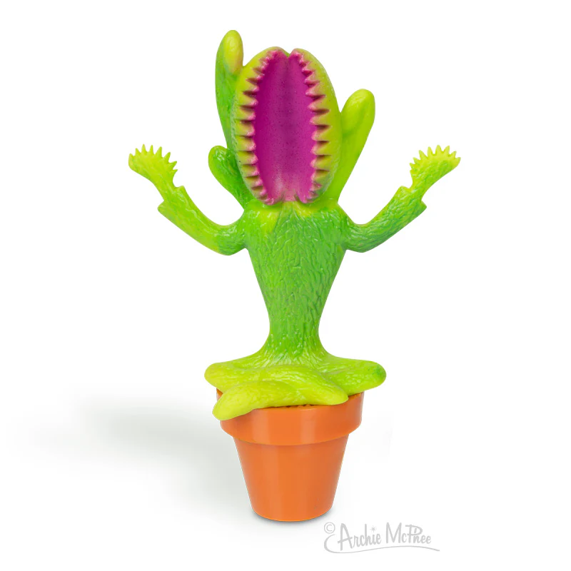 Can a carnivorous plant be mindful? These 3-3/4" tall, soft vinyl spiritually hungry plants come in two colors. With their carefully arranged stems and stalks mimicking a meditative pose, they’ll stand (sit?) as a reminder to become the fly by consuming it.