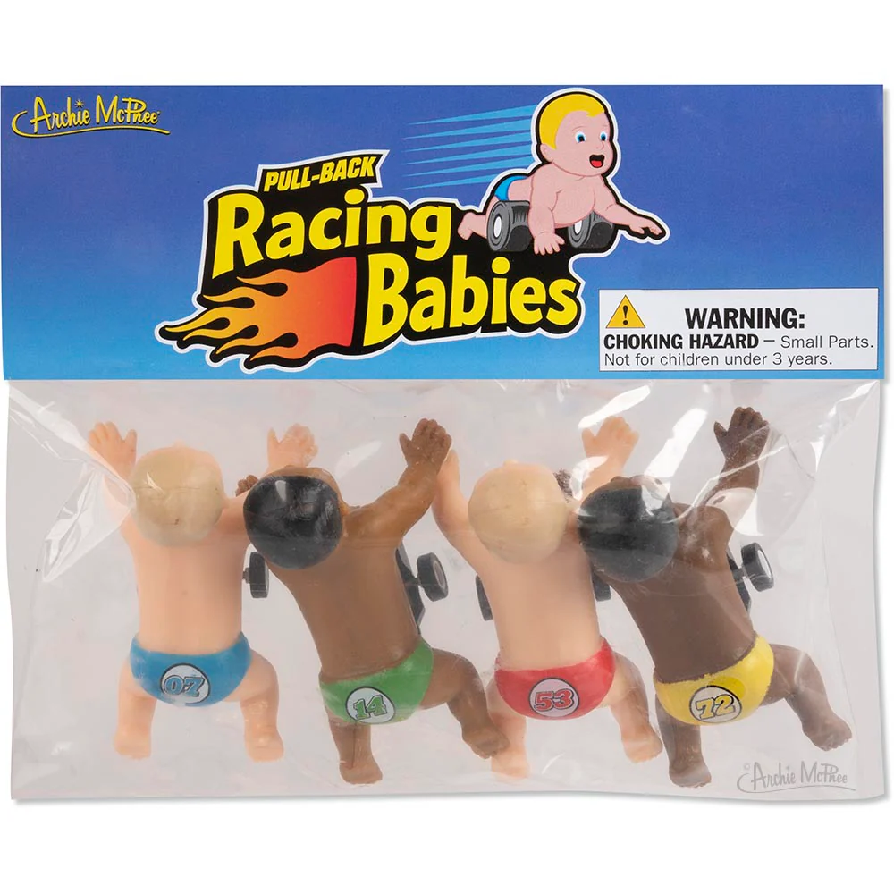 This set of four Racing Babies is precision-tuned for one baby race after another. You’ve heard of Le Mans? These are perfect for that other famous race L’enfants. Just line up the soft vinyl and plastic, 2-1/4" bundles of joy and start the countdown. They haven’t learned to walk yet, but wait until you see their speed in a straightaway during the Daycare 500. When they take a pitstop, it’s not the tires that need changing.